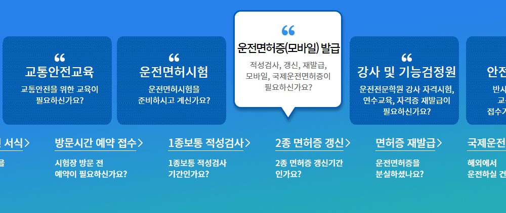- 사이트 접속 후 운전면허증(모바일 발급)을 누르신 후 1종보통 적성검사를 선택하세요.